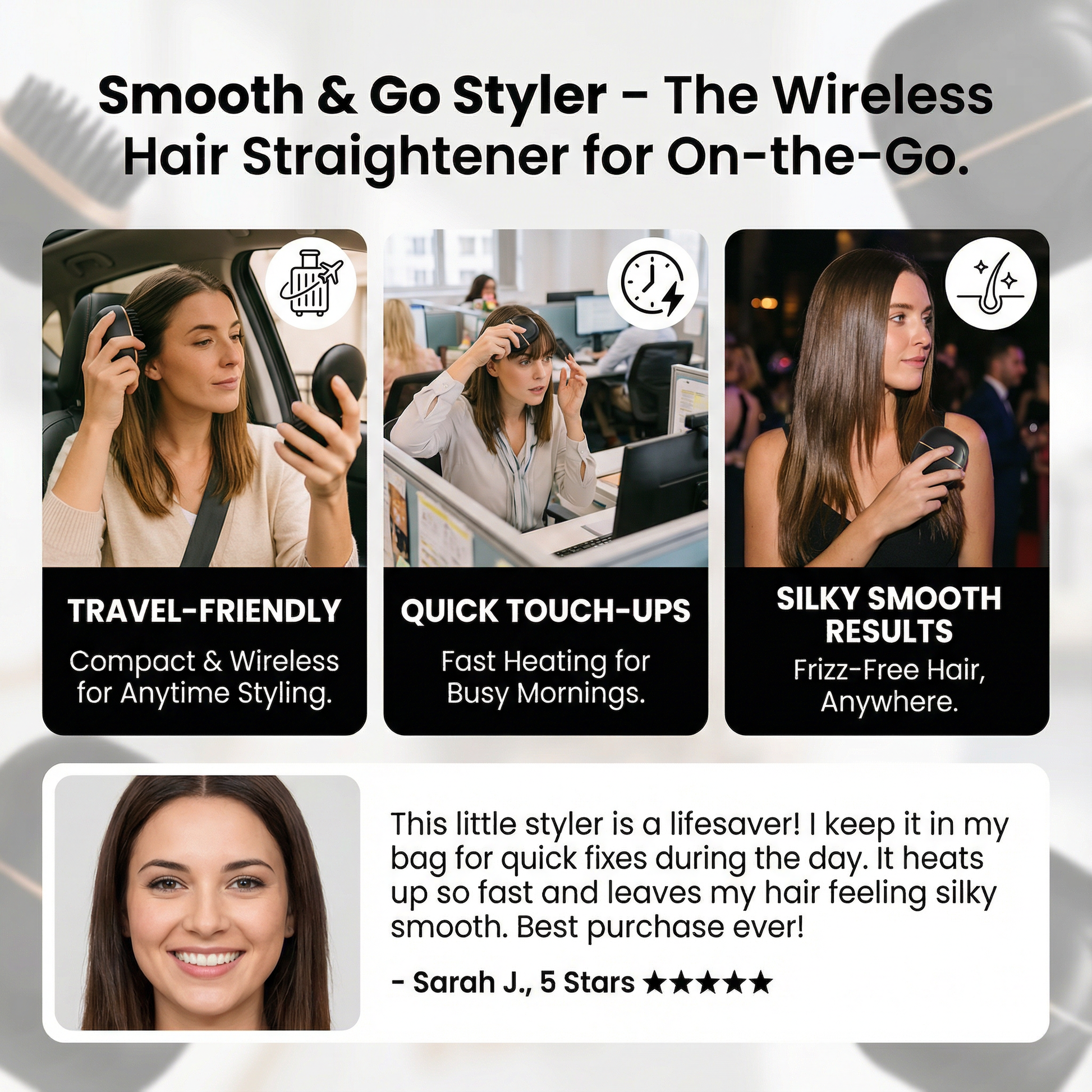 - SILKY SMOOTH HAIR IN 30 SECONDS: Achieve salon-perfect, frizz-free styles in record time. The Fast Heating Portable Straightener reaches your ideal temperature in half a minute, making it perfect for busy mornings and quick touch-ups on the go